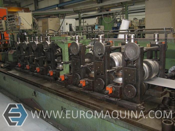 Línea de producción de tubo soldado de acero inoxidable MOD.70/120, fabricada por OLIMPIA 80