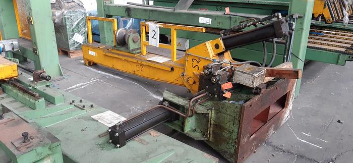 DESBOBINADORA VOLADIZA con tercer apoyo, abridor de bobinas y mesa de enhebrado; freno eléctrico; giro horario