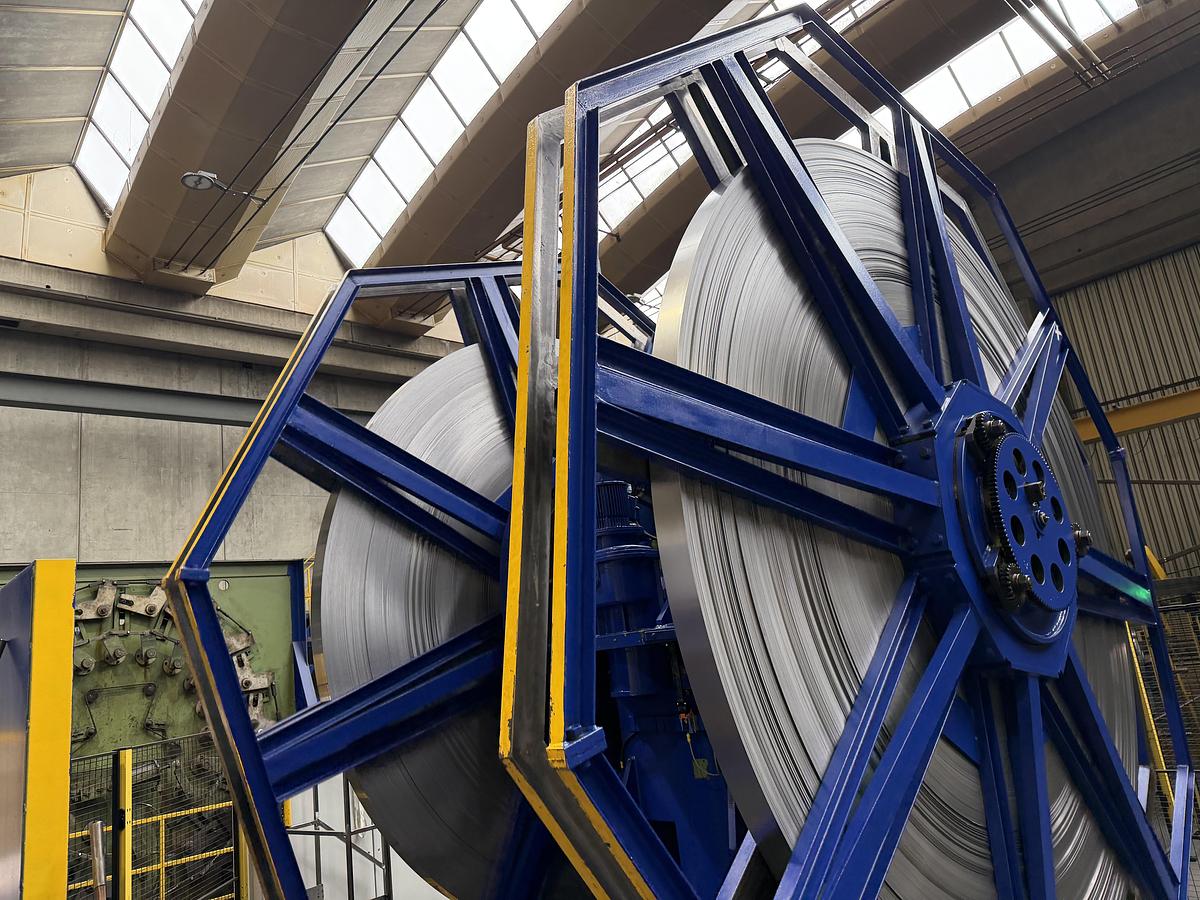 , que permite un ajuste preciso del espesor del fleje antes del conformado. Este sistema posibilita reducciones controladas de espesor desde 0,03 mm hasta 0,3 mm, mejorando la homogeneidad del material y la repetibilidad del proceso.