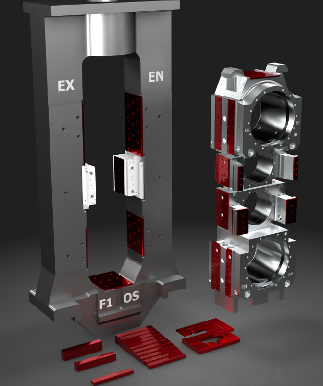 - Moldes y sus componentes (bastidores, rodillos de pie, anillos de refrigeración, camisas de agua, etc.)
