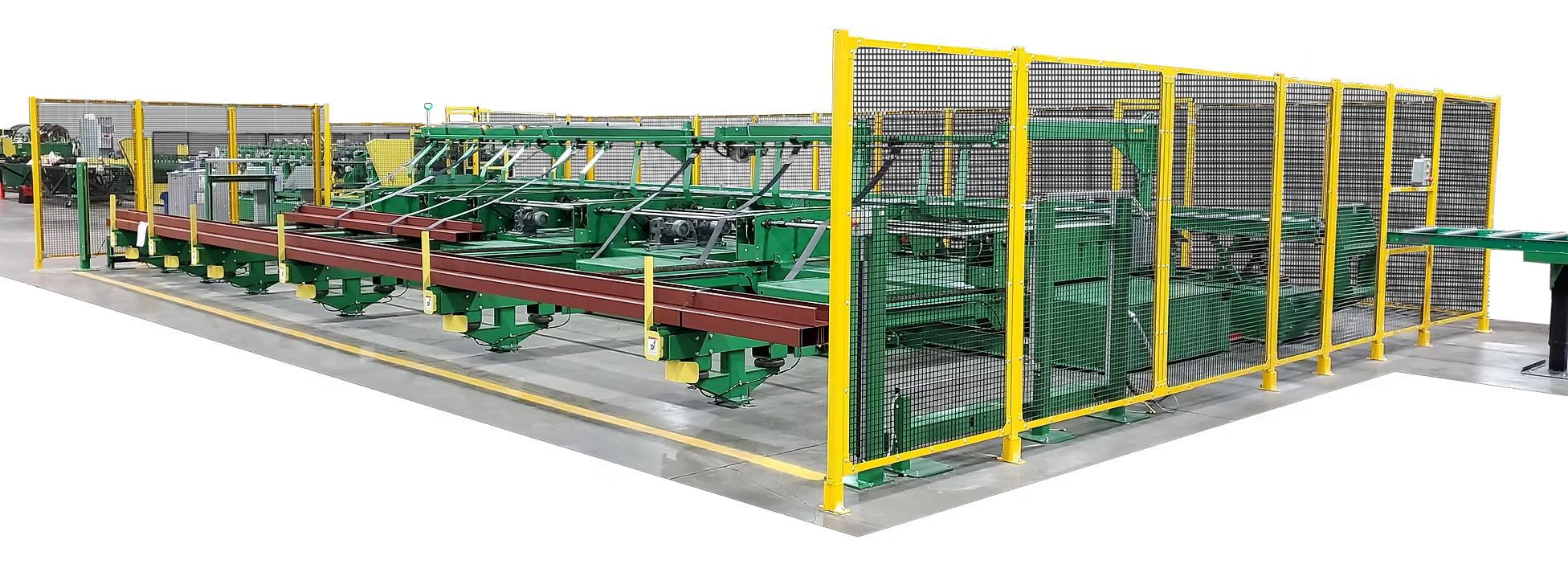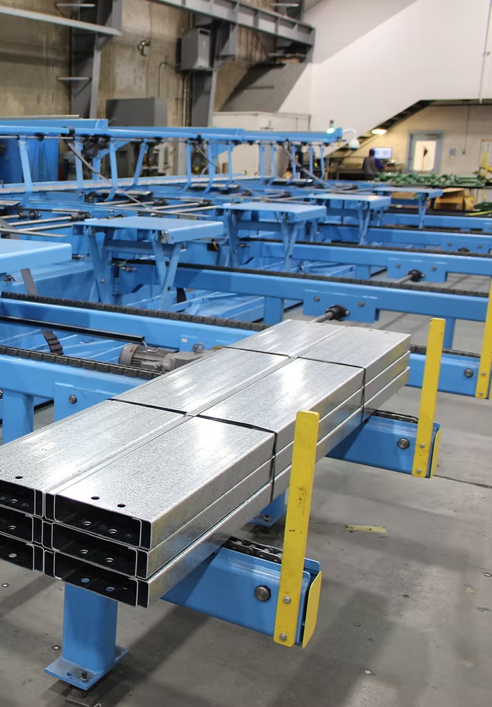 La empaquetadora tiene un tiempo de ciclo de solo 6 segundos por pieza y puede manejar toda la gama de perfiles de la industria: Cee, U, Zee y Eave Struts.
